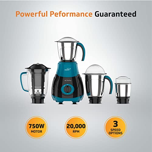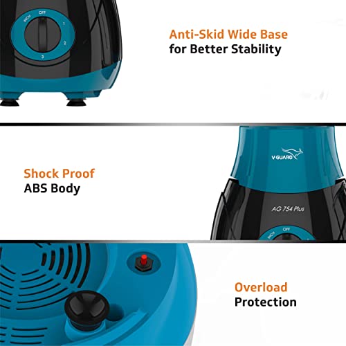 V-Guard AG 754 750 Watt Juicer Mixer Grinder, Blue & Black / 4 Jars (3 Stainless Steel Jars + 1 Juicer Jar) / Shock-Proof ABS Body/Stable Anti-Skid Base/Overload Protection