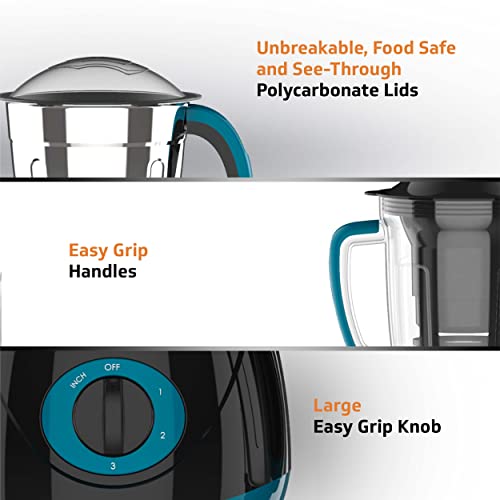 ERGONOMIC & SAFE : Easy to Clean Wide Mouth Jars | Easy Grip Knob & Handle | Anti-Skid Base | Shock Proof ABS Body | Overload Protection