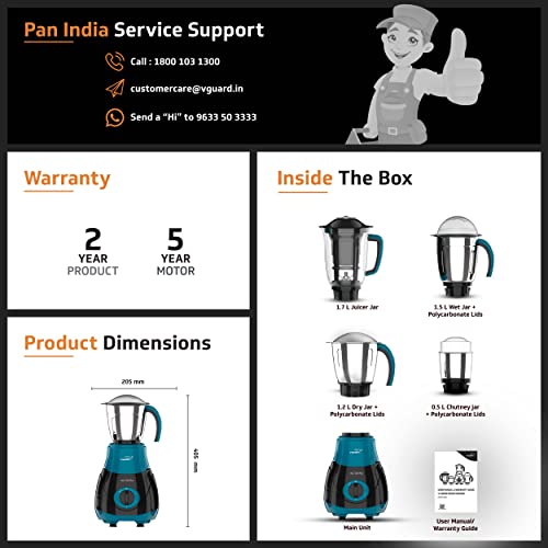 Be the first to review “V-Guard AG 754 750 Watt Juicer Mixer Grinder, Blue & Black / 4 Jars (3 Stainless Steel Jars + 1 Juicer Jar) / Shock-Proof ABS Body/Stable Anti-Skid Base/Overload Protection”