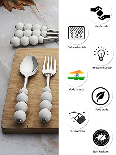 Be the first to review “VarEesha Regal White Beads Stainless Steel Silverware Set of Twelve – Spoons & Forks”