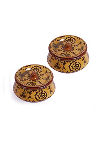 A handcrafted collection with classy cuts and modern designs makes VarEesha’s bouquet of stylish crockery, a unique one. Stylish bowls and platter take the level of the food served in them to another level. Brown Warli Ceramic Small Handi Serving Bowls Set from the house of VarEesha is a part of this collection that’s instantly appealing. These handcrafted ceramic dishes are unqiuely designed and can serve your food in a beautiful manner. Made of ceramic these handi shaped bowls have Warli deisgns inspired from tribal lives of ancient Maharashtra and comes with a matching lid. With a capacity of 250 ml each, it is not only convenient to handle and clean, but is also microwave safe and lead free.