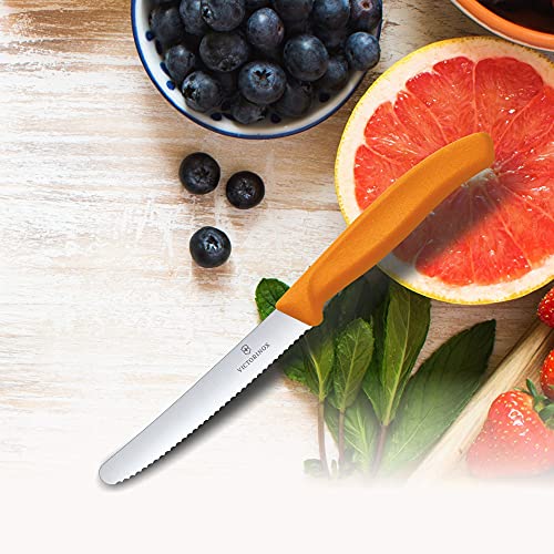 Be the first to review “Victorinox Kitchen Knife, Stainless Steel Multipurpose Table Knife for Dining and Vegetable Chopping, Serrated Edge, 11 cm, Orange”