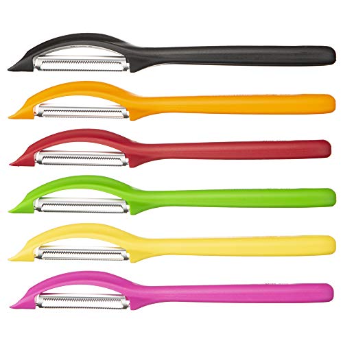 ABOUT THE BLADE: This Swiss Made serrated-edge peeler comes with 316L surgical grade ultra sharp, rust-free stainless steel double-edged blades, and can retain its sharpness for a long period of time. The second edge replaces the first one if blunt.