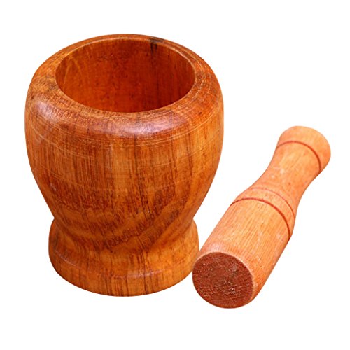 VMS INDIA Wooden Garlic Press Ginger Pepper Spice Pounder Kitchen Tool 11 x 11cm