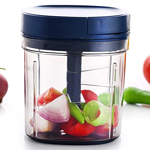 VNS Chopper with 6 Stainless Steel Blades | Cutter for Kitchen | Whisker Vegetable Fruit Nut Onion Chopper | Salad Maker Tools | Plastic Handy Dori Quick Chopper (1000 ML )