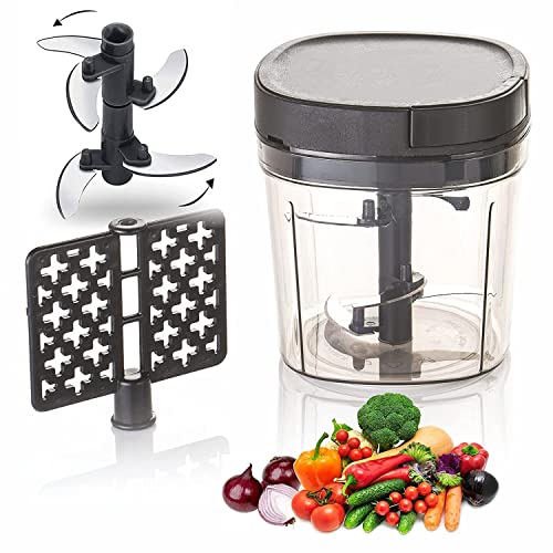 Material: Made from High ABS Green PC Unbreakable Plastic for long-lasting use | Versatile – Perfect for slicing vegetables, chopping nuts, herbs, salsa, hummus, guacamole, and more. Chop onions in seconds without crying and garlic without stinking up the kitchen. Chop veggies, whip eggs for omelets, shred cheese. Manual operation allows you to achieve the consistency you want. Spin a few times for large chunks, spin more for smaller ones, and keep on turning if you want to puree the food.