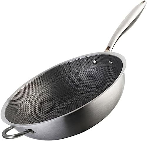 VPLLEX Frying Pan Non-Stick Pot Saute Pan Baking Induction Cooker Gas Stove, Chinese Frypan, Honeycomb Cooking Stove Stir-Fried Wok/Scratch Resistant Non-Stick Pan for Home Kitchen – Stainless Steel