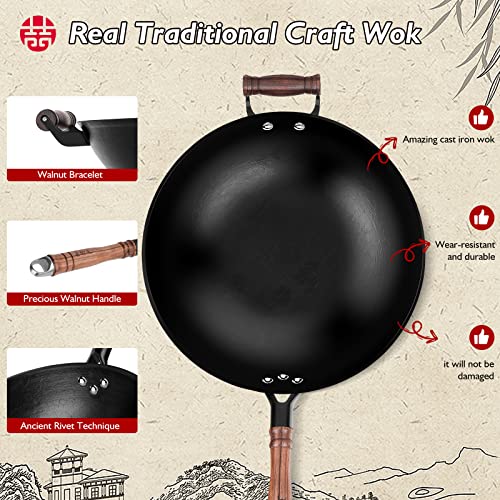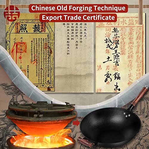 WANG YAUN JI Handmade Ancient Method Cast Iron Wok Chinese Wok with Round Bottom-12.59″