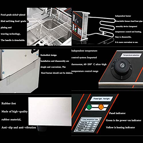 wangzi 5.5L Deep Fryer with Basket, Stainless Steel, 2500w Stainless Steel French Fries Machine, 60-200°C Temperature Control,Suitable for French Fries, Fried Chicken Legs 44x29x31cm