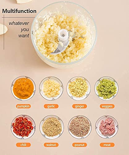 🌌 Powerful Electric Chopper : Electric garlic chopper comes with USB charging cable*1. Just press a button to chop salad ingredients or mix seasonings. Ideal for family small chopper or portable baby food processor.
