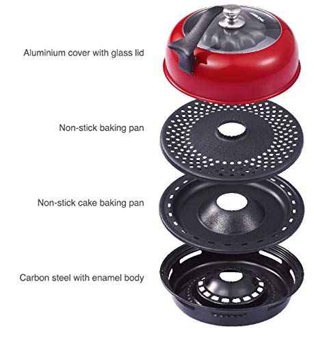 Aluminium & Glass Lid: Dome-shaped Aluminium lid with see through glass helps in observing the different stages of cooking. It also traps and circulates the hot air for faster cooking.