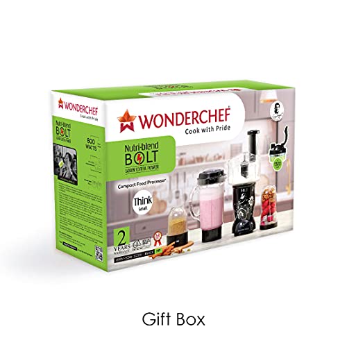 TRANSPARENT & UNBREAKABLE JARS: Polycarbonate jars actually let you see what’s inside, so you don’t need to keep opening up the lids to see whether your job is done or not. The unique inverted design with the lid screwed safely at the bottom keeps food intact in the jar and you won’t have to keep your hand on the lid during operation. Place – Twist – Play!, 2 YEAR WARRANTY & AFTER SALES SERVICE: Reliable Wonderchef warranty with the best after sales service in 12,000 pin codes across India. Buy Spares & Accessories on Amazon.