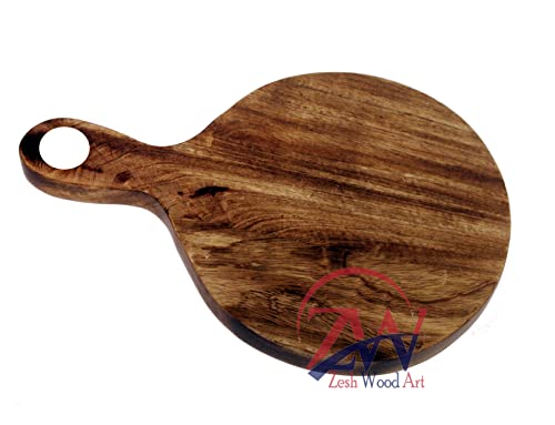 Made from durable Mango wood with a unique cork backing that prevents slippage during use. Perfect for cutting as well as serving cheeses and crudite. Easy to clean and maintain – Hand wash only. Seasoned, Thick, Handcrafted, Bonus Non-Slip Mats – extra thickness provides perfect stability. Edge grain expert handcraft for top durability and resistance to stains. Chop-N-Slice, Reversible, Juice Groove, Handle Grips – featured with wide and easy-to-clean juice groove to catch excess liquid during food prep. The ergonomic handle design allows you to hold the board easily. It has a hole in the handle to allow easy hanging on hooks and cupboards. The Mango wood chopping board is strong and made from a single piece of wood. It is a densely grained wood, which contributes to the exotic patterns it has on the surface. It has a medium to coarse texture making it highly resistant to water. This reversible chopping board with the elegant design and handle holder makes it a multi-functional board, serves as a prep station, cutting, and serving board.