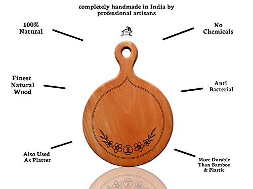 Natural Mate Boards are a perfect solution for your daily cutting needs in the kitchen. Crafted from a solid piece of Mahogany wood, this product is sure to last in your kitchen for years to come. Mahogany wood naturally has excellent durability with water and also these heavy duty boards are curated and seasoned to give you an uncompromised quality that assures no cracking and ageing due to water. Simply wash the board with mild soap and let it dry for re-use. Just wipe over it with cooking oil after usage will give long term fresh look and durability for ages. Now you can finally say no to plastic or metal boards since wood as a material is naturally safe and has been used in kitchen since ages. Dimensions: Length : 35 cm Breadth: 24 cm  Thickness : 2.5 cm