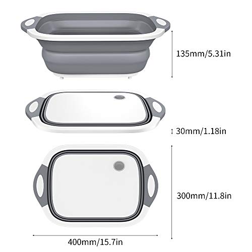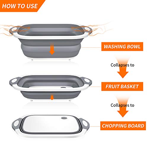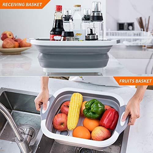 YA YATECH Collapsible Chop and Strain Cutting Board, Mixing Bowl, Colander, Ice Bucket, Fruit and Vegetable Container Basket, Strainer with Draining Plug Multifunctional Kitchen Gadget