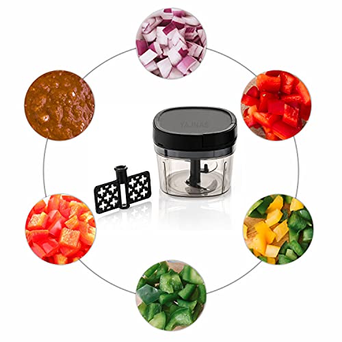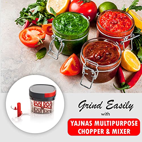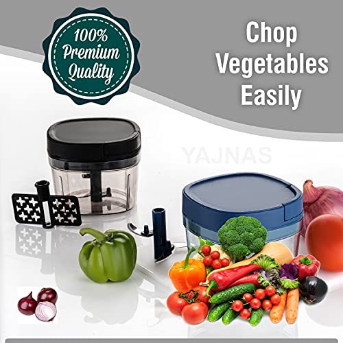 YAJNAS Handy Chopper 2 in 1 is an excellent solution to all of your fruit and vegetable chopping needs. Featuring 3 sharp and durable stainless steel blades and a unique string design, this manual chopper chops, and cuts vegetables in a hassle-free manner with minimal effort. Simply cut the fruits or vegetables to a medium-size before placing them in the chopper and get an evenly chopped version for your salads, fruits, sabzi preparations, and other cooking purposes chop all types of vegetables and fruits with Ease.