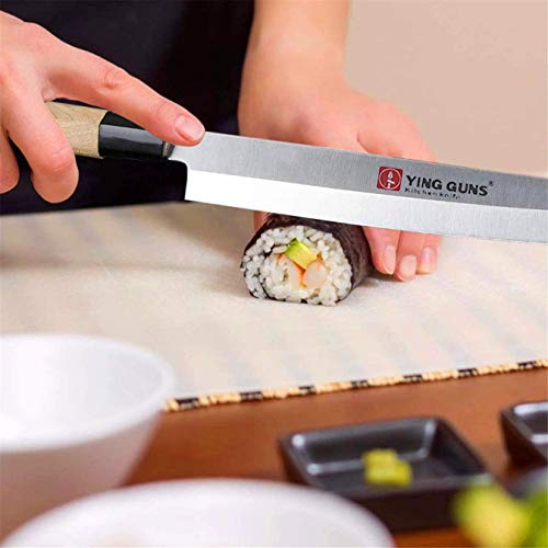 Sashimi Knife, fish-slicing knife, is used for slicing raw fish thin. When slicing raw fish, you need to pull the blade toward yourself. The long blade helps to pull it more smoothly. By using a sashimi knife, professionals can preserve the texture, flavour, and freshness of the fish.