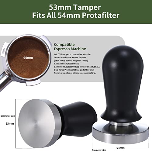 【100% Satisfaction Guarantee】: The espresso tamper is an ideal gift for any coffee enthusiast and home barista looking to get the most out of her espresso machine. We offer multiple size options, including 49mm, 51mm, 53mm and 58mm tamper espresso, to ensure compatibility with various flat bottomless filters. YOLOYO espresso has a first class after-sales service and offer a one-year warranty after purchasing.