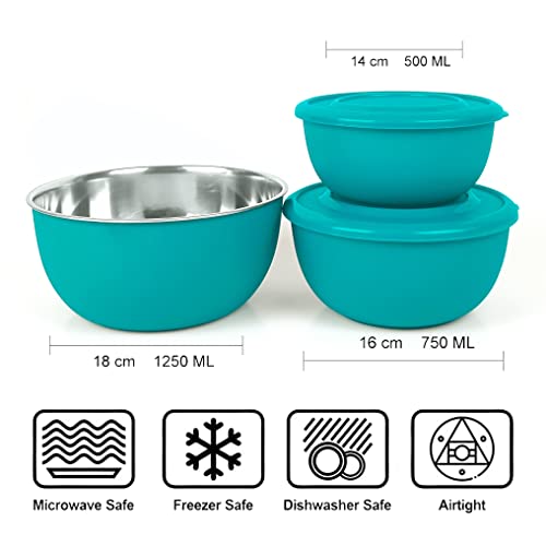 Zaib Microwave Safe Food Storage Container for Kitchen with Lid Pack of 3 Pcs | Capacity – 1250 ML, 800 ML, 500 ML (Turquoise Plain 3 Classic)