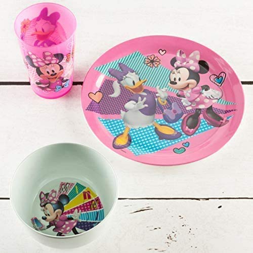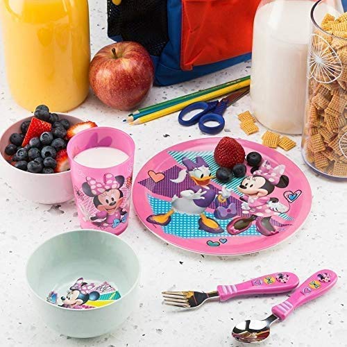 Zak Designs Disney Kids Dinnerware Set Includes Plate, Bowl, and Tumbler, Made of Durable Material and Perfect for Kids (Minnie Mouse & Daisy, 3 Piece Set, BPA-Free)