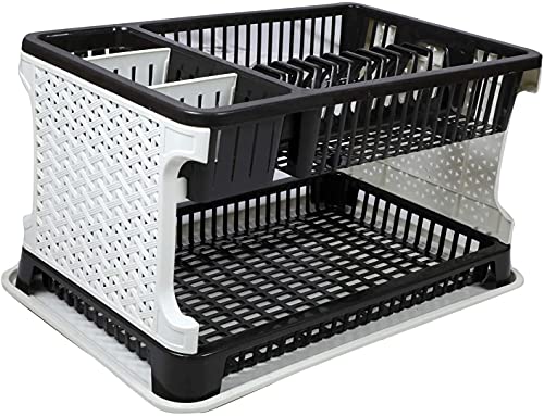 ZDIPE Kitchen Organizer Rack with Water Storing Tray, Plate Rack, Dish Rack, Plate Stand, Dish Stand, Utensil Rack – Black and Gray