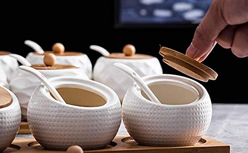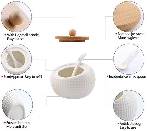 【Ceramic Sugar Bowl Set】Combining with premium ceramic and natural bamboo, this white porcelain sugar container will complement on most home decor, elegant appearance, durable and suitable for household use.