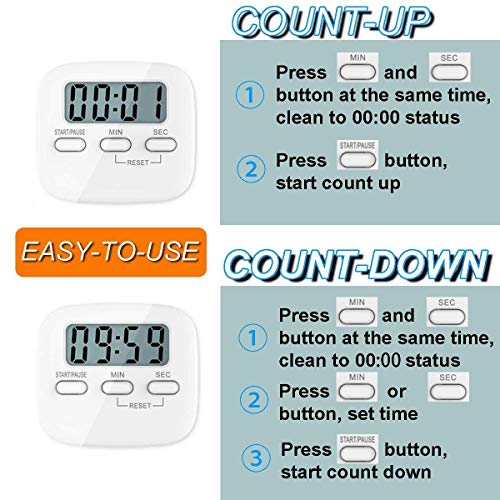 COUNT UP AND COUNTDOWN: Simple operation with a count down and count up functions with max time: 99 min, 59 sec, this can also act as a stopwatch counting up from zero. Push and hold button over 3 seconds then the time will fast forward