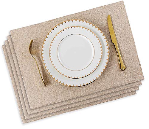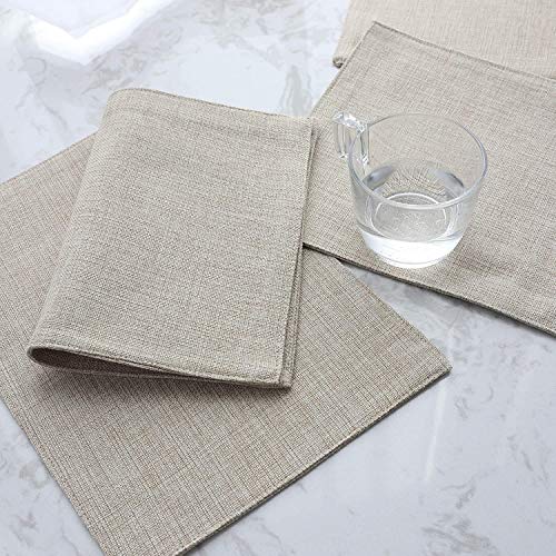 Zecca Washable Jute Tablemats/Placemats Set of 8 Heat Resistant Dining Table Place Mats for Kitchen Table Wedding Party, 12 x 18 inches, (Natural Linen)