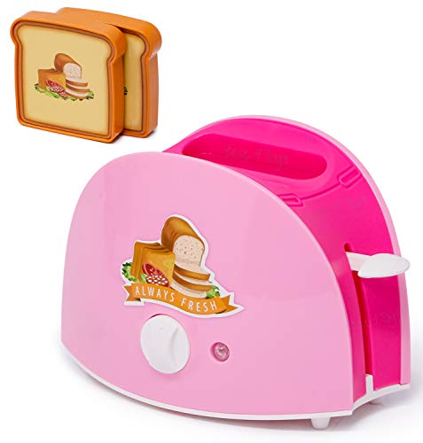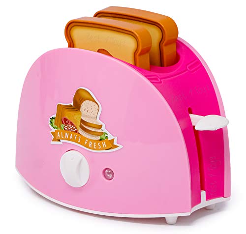 Zest 4 Toyz Kitchen Bread Toaster Play Set for Kids Girls with 2 Slices of Bread, Pretend Play Plastic Kitchen Toaster appliances for Kids and Toddler- Pink