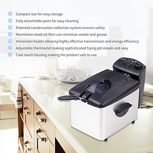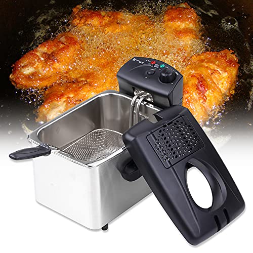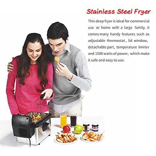 is deep fryer is of compact size which is ideal for home use. It comes many handy features such as adjustable ermostat, lid window, detachable parts, temperature limiter and 1500 watts of power, which make it safe and easy to use. If you or your family are deep-fried food lovers, is bright and shiny kitchen appliance is a must-have in your kitchen.