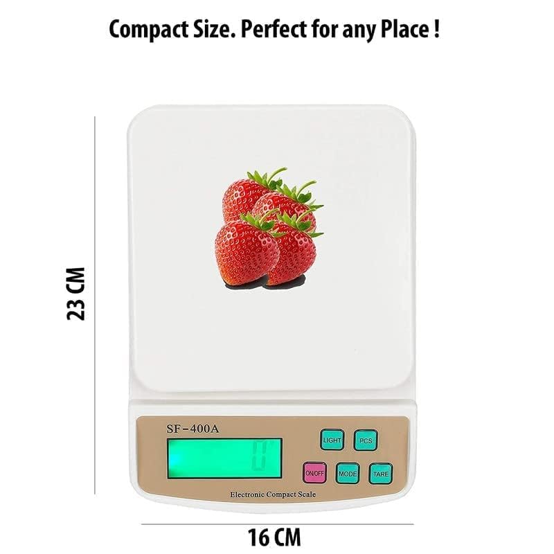 Made from durable plastic -suitable for home, shops & industries. Beautiful design will compliment your modern kitchen.Wide LCD screen display, easy to read, Automatically locks the reading when data is stable.4 DIFFERENT WEIGHING UNITS: Max weighing capacity: 10KG. Can see weight in grams (g)/ kilogram (kg)/ pounds (lb) / ounces (oz).4 DIFFERENT WEIGHING UNITS: Max weighing capacity: 10KG. Can see weight in grams (g)/ kilogram (kg)/ pounds (lb) / ounces (oz).Equipped with a High Precision Strain Gauge Sensor System. It ensures accurate weighing even in high humidity areas as its splash-proof design. Multiple Features : There are multiple features on the scale, such as an ON/OFF mode, a tare function, a unit exchange function, and an overload indicator.Wide Screen Display, Automatic Data Locking, Low Power Consumption, Low Battery Indicator, High Precision Sensor, When the scale is overloaded, the scale will appear O/C.To ensure accurate measurements, place the Kitchen weighing scale on a flat surface.High Precision: This scale is built with high precision sensors to give you the right measurements to aid in your cooking.TARE Function: This function allows you to set the scale to zero with your bowl already placed on the scale to weigh liquid or fragile ingredients.