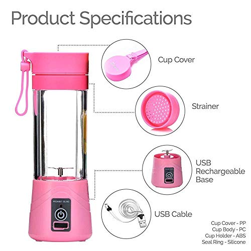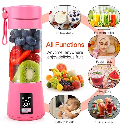 Zoreo Mini Blender Fruit Mixer Machine Portable Electric Juicer grinder Cup 380ML Personal Blender Smoothie Maker USB Rechargeable Fruit Juice Extractor and Mixer, Pink, in built jar