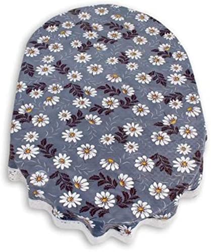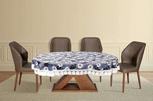 RMDecor PVC Solid Printed Waterproof 4 Seater Oval Abstract Pattern Dining Table Cover with White Border Lace (WxL – 54×78 Inches, Multicolor) Blue Flower