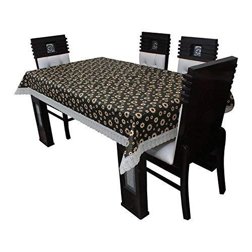 SHREEBALA Plastic Solid Printed Rectangular Dining 4 Seater Table Cover with White Lace (Multi, 54″ X 78″)