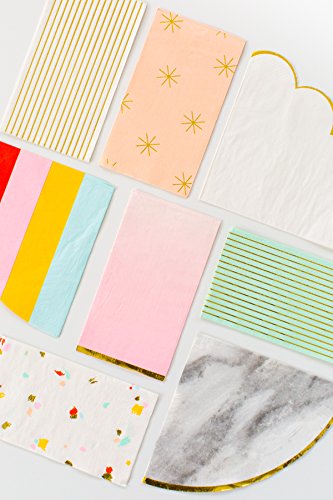 Includes 32 premium quarter round marble patterned napkins with a chic gold foil edge